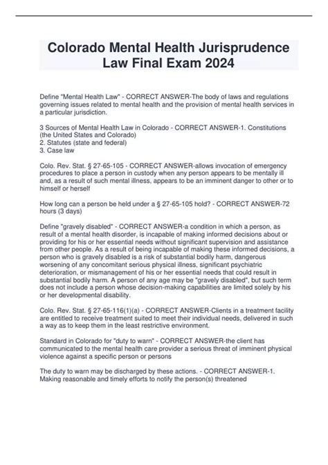 Read Online STATE OF COLORADO MENTAL HEALTH JURISPRUDENCE Doc Gutenberg